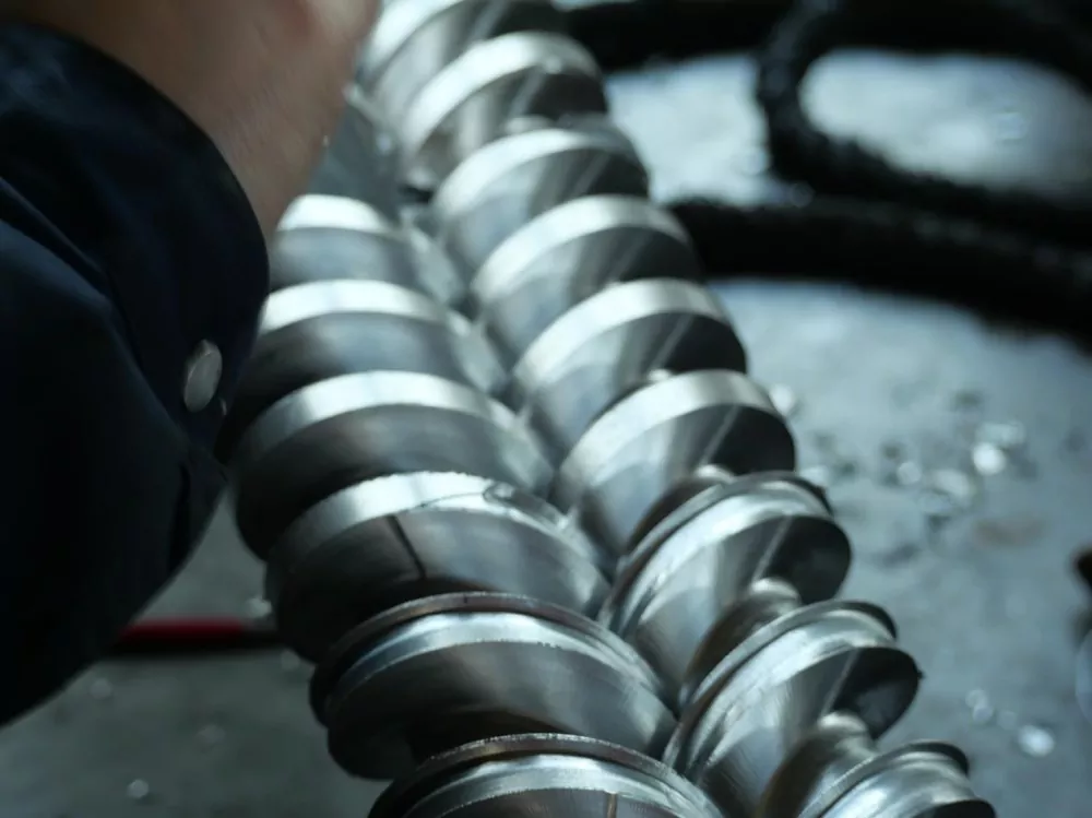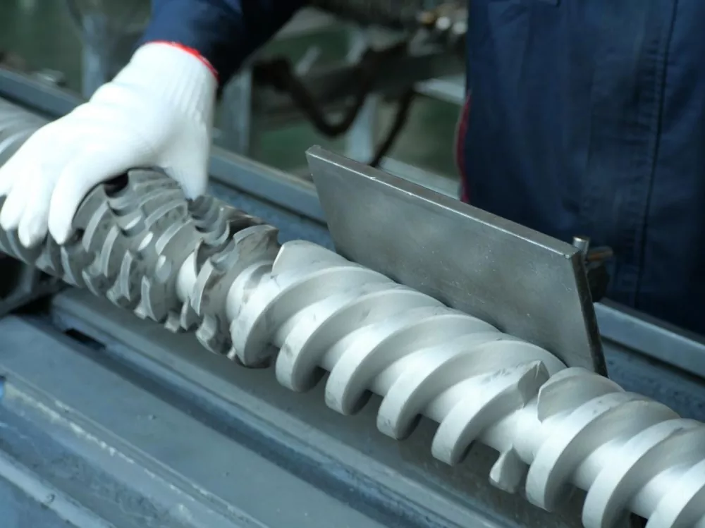 Materialvalg er også avgjørende. Skruene våre er laget av høykvalitets 38CrMoALA nitrert legert stål. Dette gjennomgår en syv-dagers bråkjølings- og nitreringsbehandling, noe som resulterer i et 0,50-0,70 mm tykt nitrert lag og en overflatehardhet på HV950-1050. Disse materialegenskapene sikrer utmerket slitestyrke selv ved temperaturer rundt 200°C, og forlenger skruens levetid med minst en femtedel sammenlignet med konvensjonelle produkter. Dette forhindrer materialoppbygging i døde hjørner på grunn av overflateslitasje ved langvarig bruk.